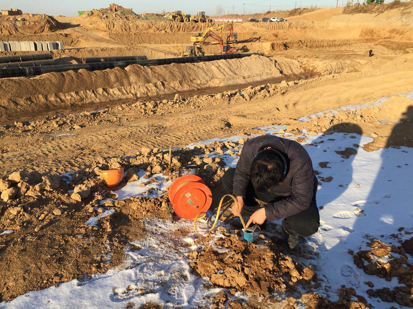鄂尔多斯-安平-沧州输气管道一期工程安全监测项目,我公司负责周边地表沉降、坡顶沉降、坡顶位移、坑底隆起、地下水位监测、土压力监测、孔隙水压力监测、定向钻轨迹监测、泥浆压力监测、回拖力监测、粘度监测。下图为我公司技术人员在现场工作情况。